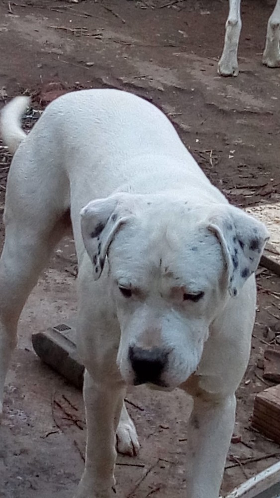 Es un Dogo argentino muy cariñoso y juguetón ?. Se diferencia de sus hermanos en que tiene un ojo azul y otro marrón ?.