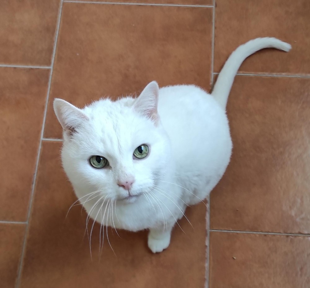 Esta bolita blanca es Snow, un precioso felino de ojos verdes ?.