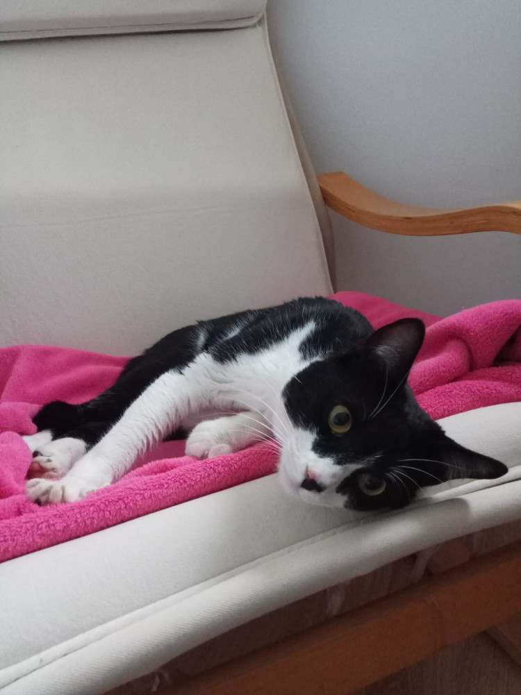 Ahora Pingu está en acogida y si se adapta bien con las otras gatas que tiene, tendrá seguro ya su hogar y una nueva familia:)