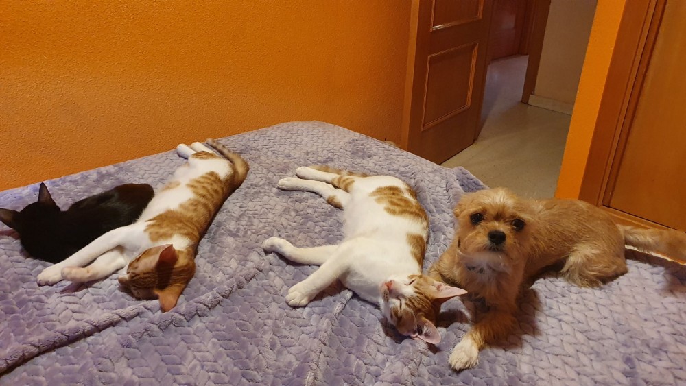 Es un gatete muy jugueton y se lleva bien con perros ya que en la casa de acogida vive un perrete.