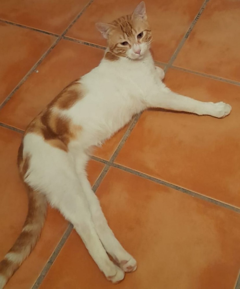 Coco ya es un gato feliz y sigue siendo igual de cariñoso que cuando lo encontraron y muy bueno y docil.