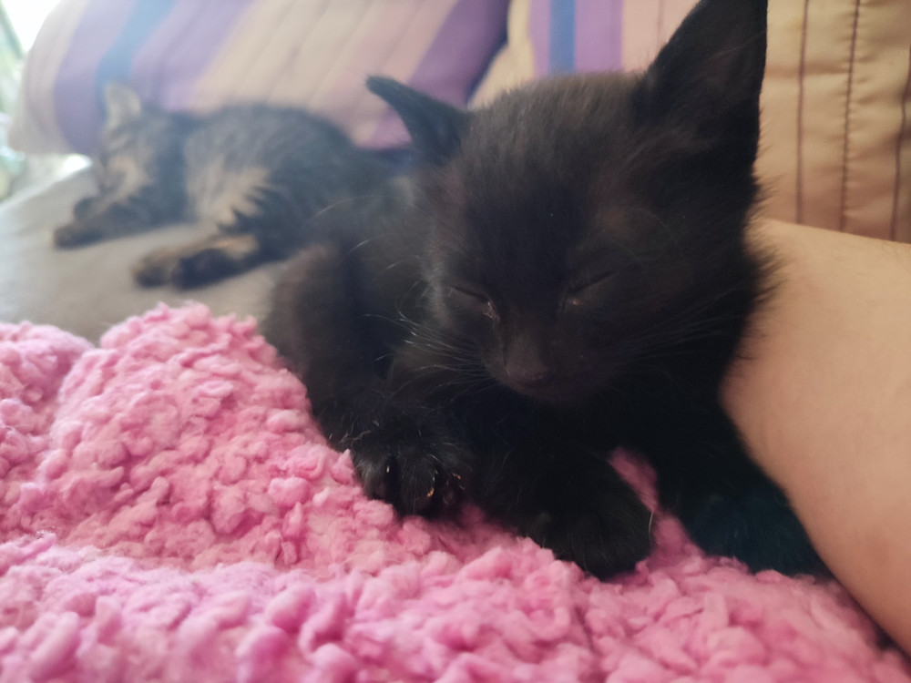 Es un gatito precioso, juguetón y cariñoso. Le encanta jugar sobretodo con su hermana Mipha y corretear detrás de sus juguetes para cazarlos