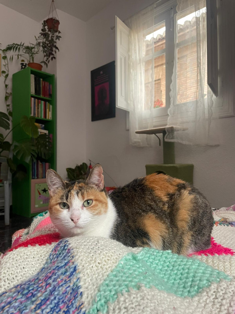 Caterina vivía en los jardines de un colegio mayor del centro de Granada, donde tuvo su última camada. Se capturó para ser castrada y no se podía devolver al mismo lugar porque no querían que estuviera allí.