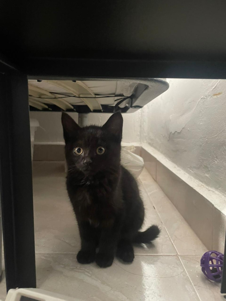 Bibi fue encontrada en el tejado de una casa abadonada junto a mas hermanos, cuando se iba a castrar a su madre que forma parte de una colonia en control.