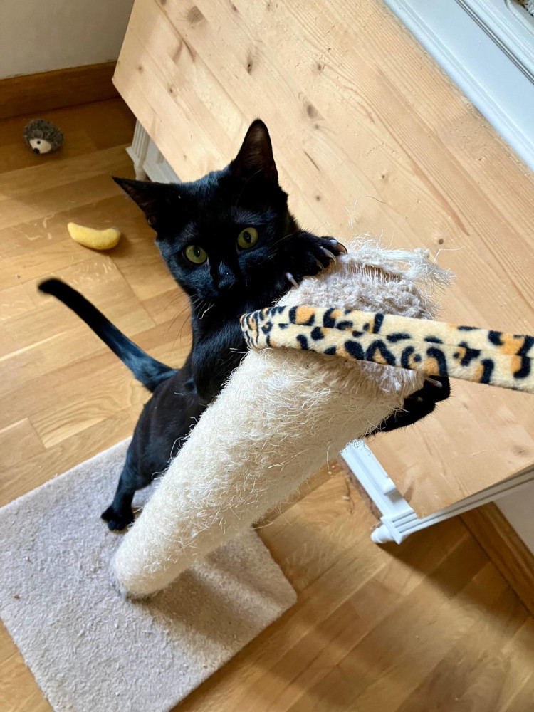 Ezra busca un hogar tranquilo que entienda que, al principio, necesita su espacio. A cambio, ofrece ronroneos, juegos con plumas y una lealtad infinita. Entonces, qué piensas? Puedes ser mi mami o papi para siempre?