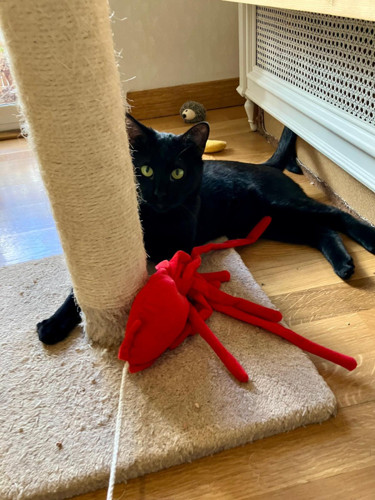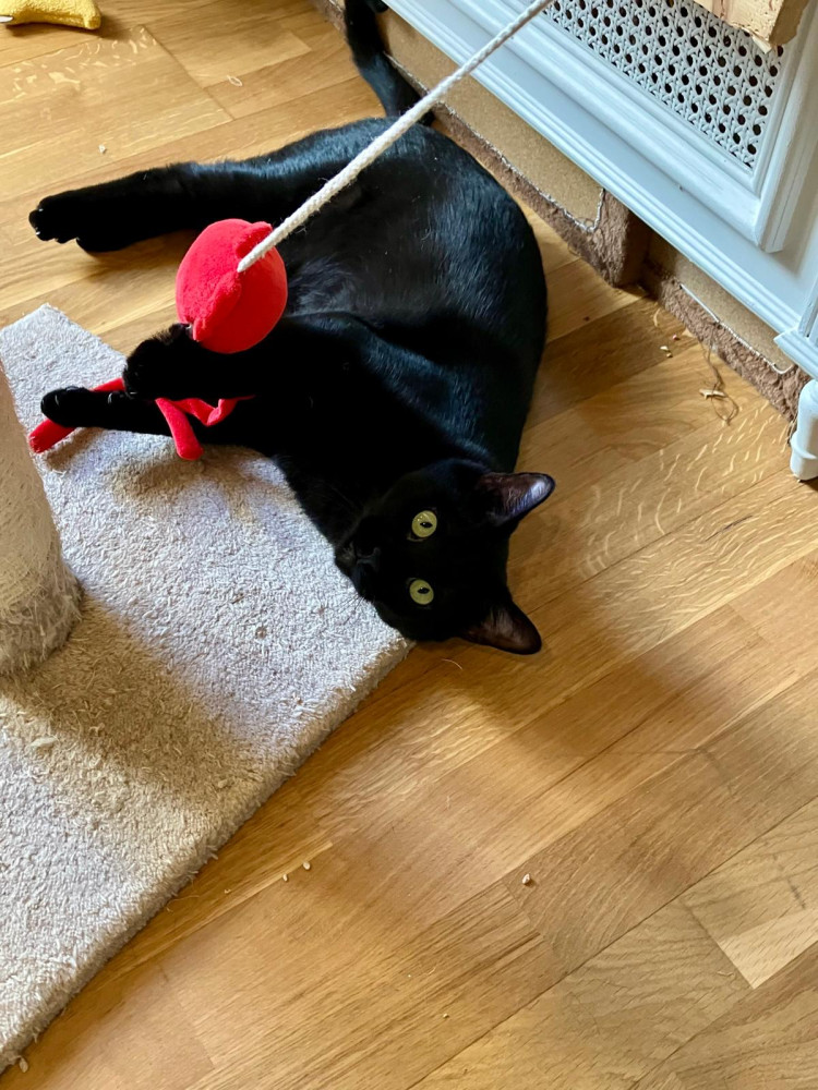 Hoy, ese gato que se escondía es un compañero sofisticado que adora los mimos, es un michi muy limpio, que incluso lava sus propios juguetes. También le apasiona el paté, el pollo y el atún.