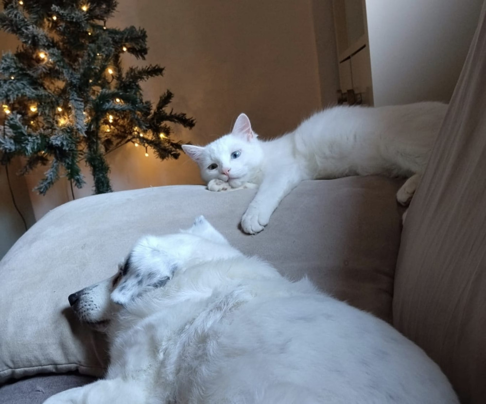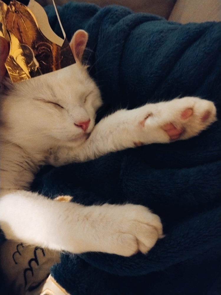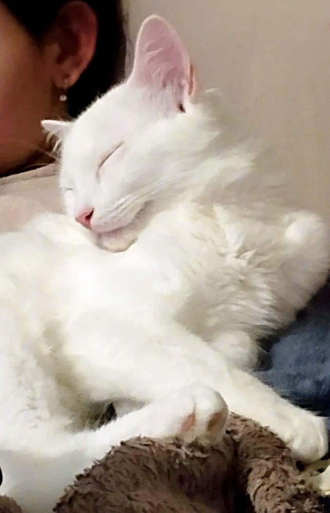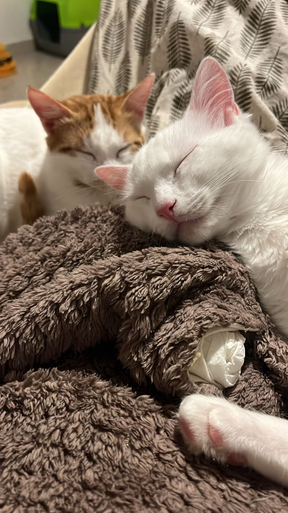 Piolín fue rescatado de una colonia a la que habían envenenado en varias ocasiones, al ser pequeño, fue fácil socializarlo. Poco después de su rescate, la casa de acogida se dio cuenta de que era sordo, razón por la cuál es un poco más dependiente que otros gatitos y no le gusta estar solito. Está muy apegado a su hermanita Chispi que también fue rescatada de la misma colonia y es su compañera y guía.