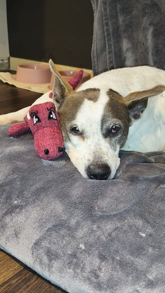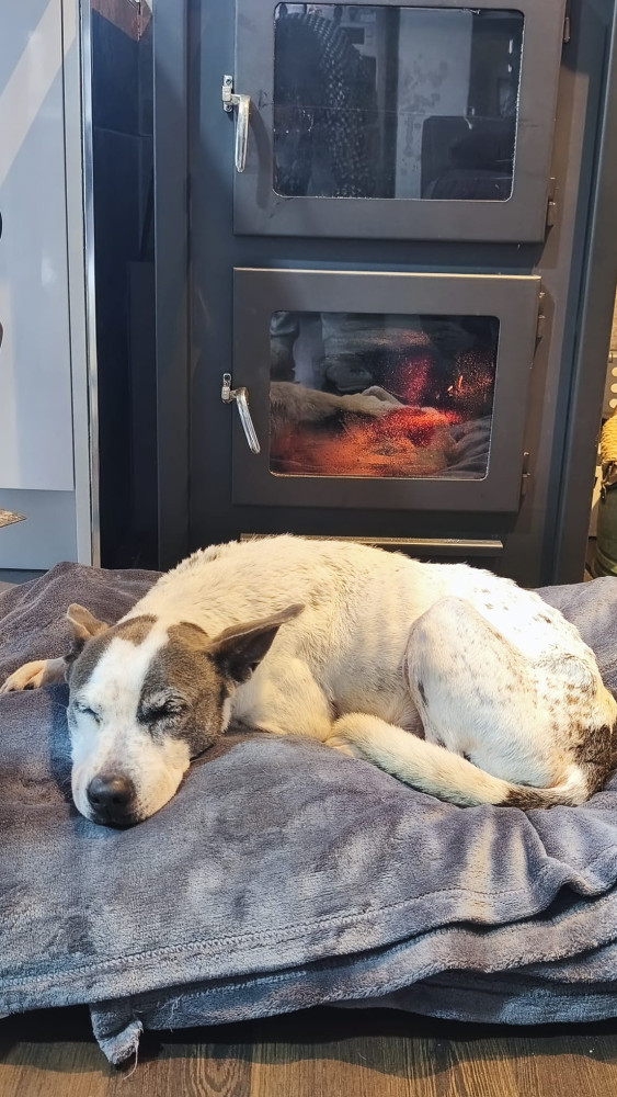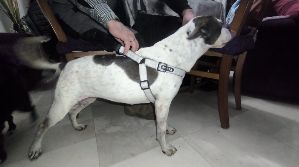 Ha recobrado las ganas de vivir y le llaman "perrita chimenea". Lati es cariñosa, de tamaño medio, limpia en casa y se lleva bien con otros perros.