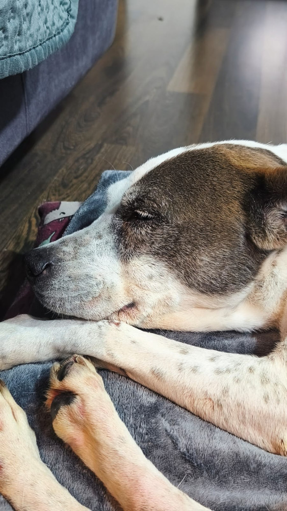 Esta perrita se llama Lati, estaba en las instalaciones de Athisa(Granada)...una gran persona vió como Lati pedía ayuda con sus ojos y sus patas y le ofreció su casa para que se recuperara.
