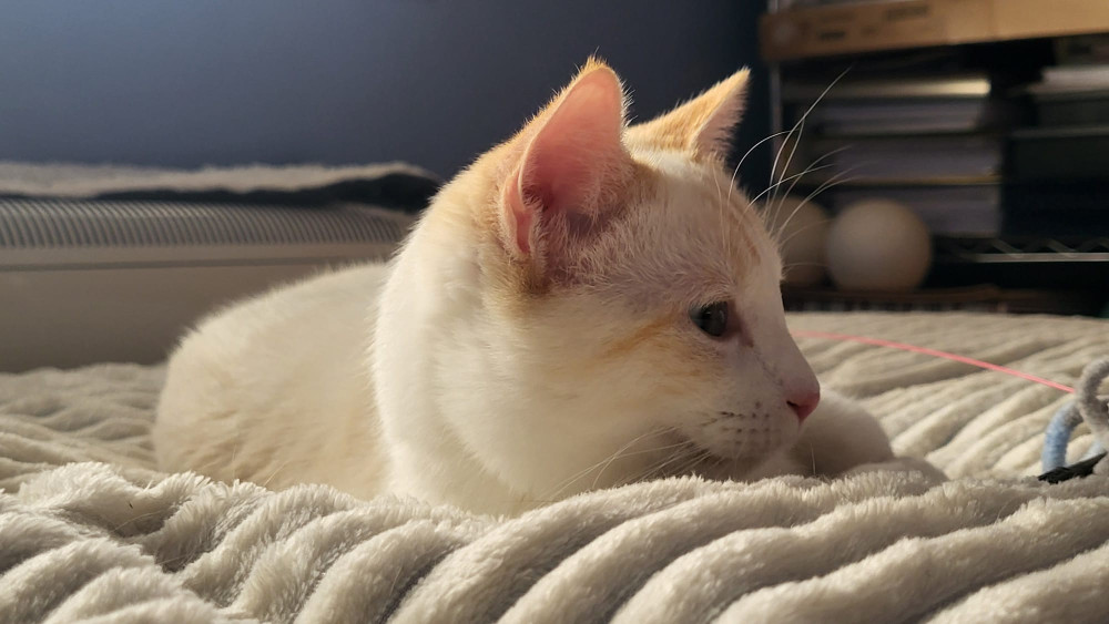 No es compatible con niños, es jugueton y miedoso al principio. Es un gato cojín, se suele tumbar encima tuyo para que lo acaicies