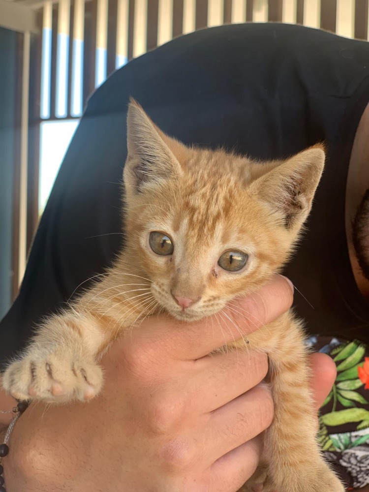 Os presentamos a Simón. Este gatito tan pequeño vivía en la calle solo. Este pequeñín rubio es un gato muy juguetón y sociable, más que apto con otros gatos ?.